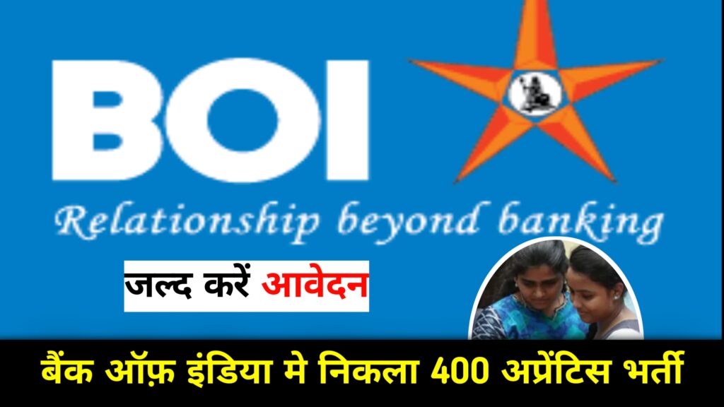 Bank of India Apprentice Recruitment 2025: भारत में बैंकिंग सेक्टर के अंदर बैंक ऑफ़ इंडिया ने उन युवाओं के लिए एक बेहतर अवसर दिया है जो बैंकिंग सेक्टर में करियर शुरू करना चाहते हैं| बैंक ऑफ़ इंडिया भारत का एक प्रमुख सरकारी बैंक है जो हर साल अप्रेंटिस पदों पर भर्ती करता है वर्ष 2025 में बैंक ऑफ़ इंडिया ने लगभग 400 अप्रेंटिस पदों के लिए भर्ती निकाली हुई है| यह भारती खास तौर पर उन युवाओं के लिए है जो ग्रेजुएट कर चुके हैं वही सिर्फ इस इस भारती का आवेदन कर सकते हैं अप्रेंटिस का मतलब होता है प्रशिक्षण ( Training ) जिसमें उम्मीदवारों को बैंक में काम करने का अनुभव दिया जाता है इस दौरान उम्मीदवार बैंक के दैनिक कार्यों, कस्टमर हैंडलिंग और बैंकिंग प्रोसेस को सिखते है | आपको इस बात की जानकारी होनी चाहिए कि यह नौकरी अस्थाई नहीं होती लेकिन भविष्य में बैंकिंग परीक्षाओं की तैयारी करने वालों के लिए यह बहुत फायदेमंद साबित होती है | जो उम्मीदवार बैंकिंग फील्ड में अनुभव लेना चाहते हैं उनके लिए यह भारतीय एक सुनहरा मौका है | चलिए आगे समझते हैं इसकी पूरी जानकारी |